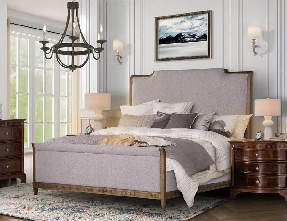 Birch, Poplar Solid, Walnut Swirl Veneer, foam, fabric.
